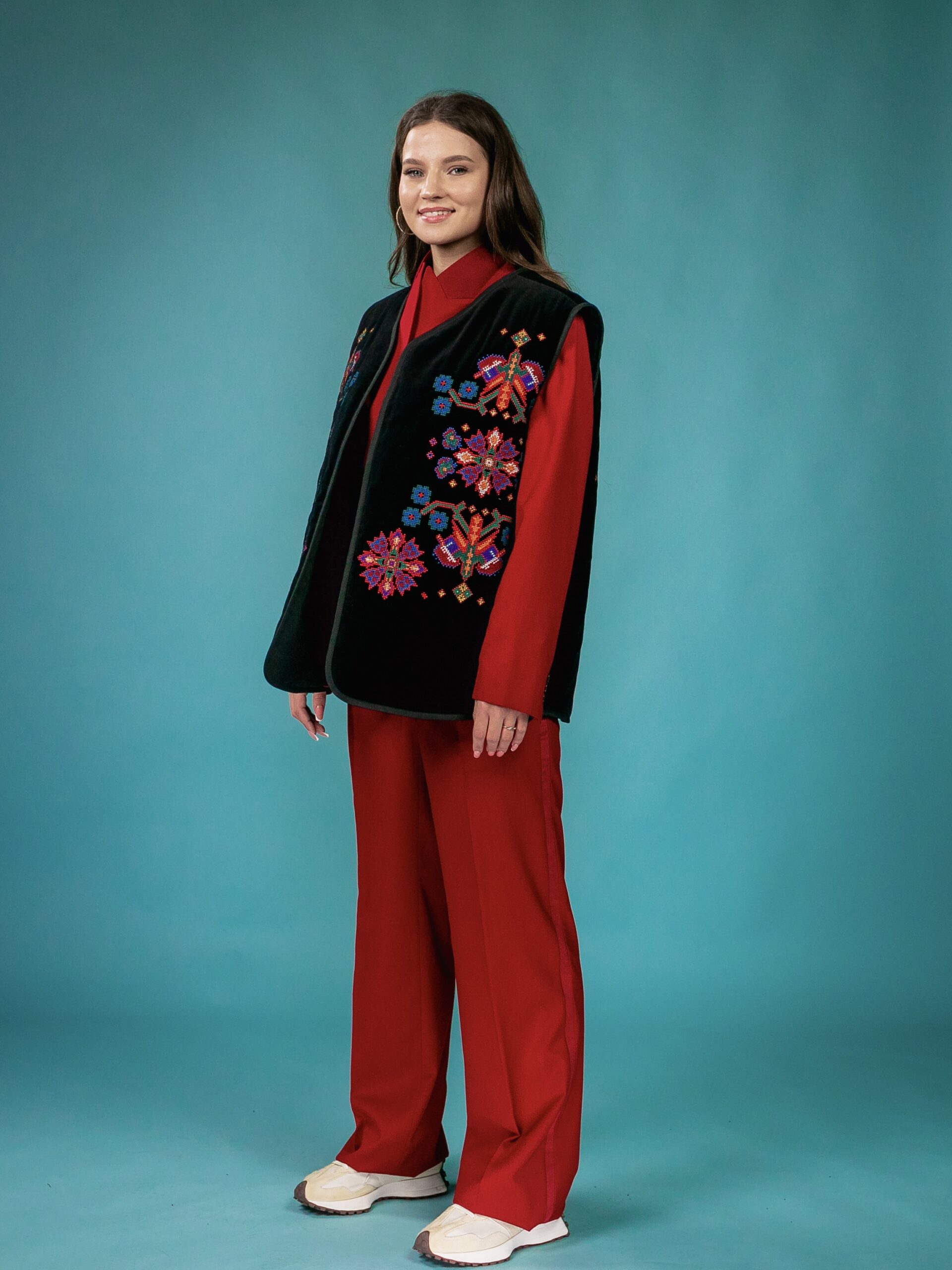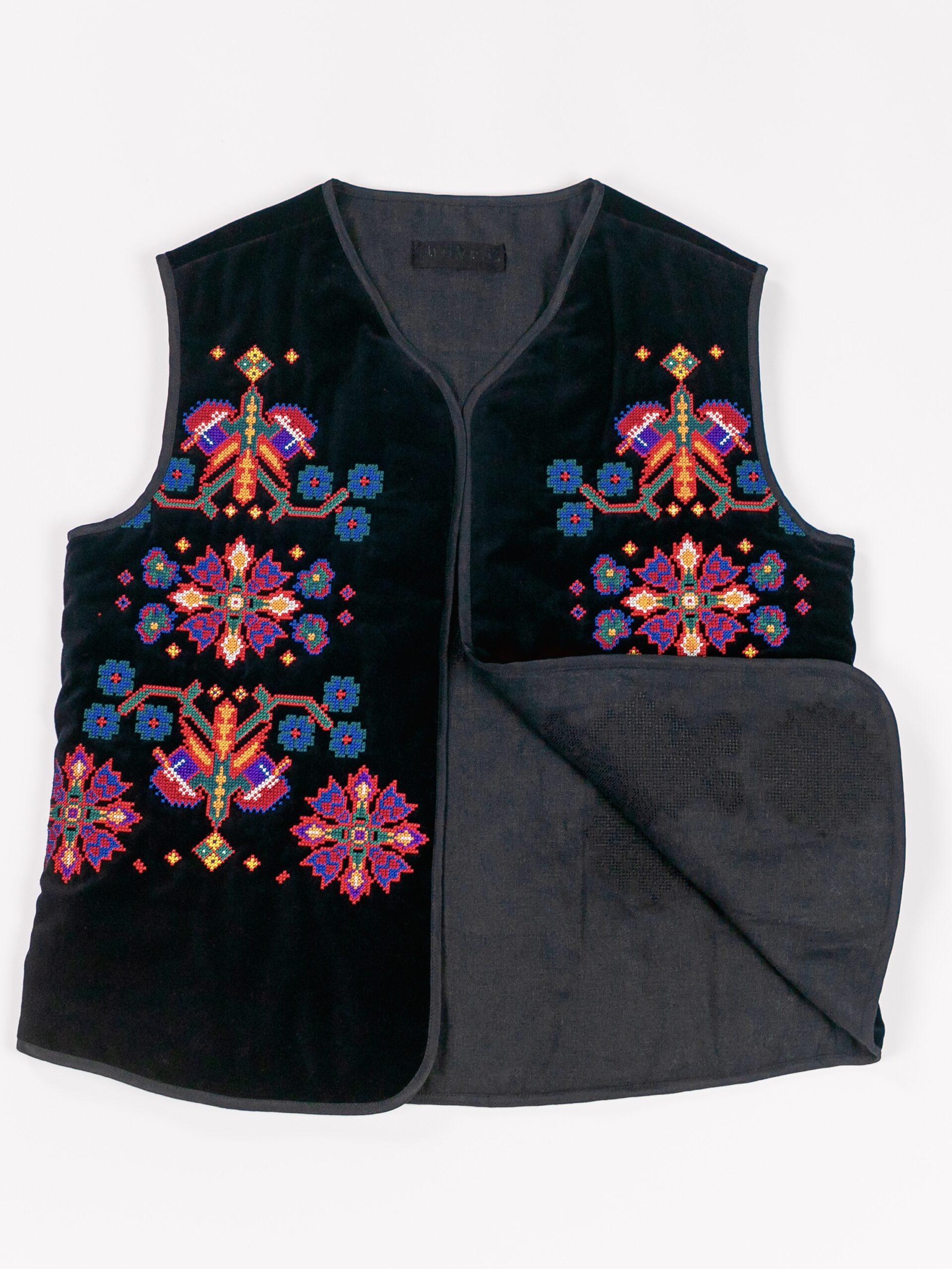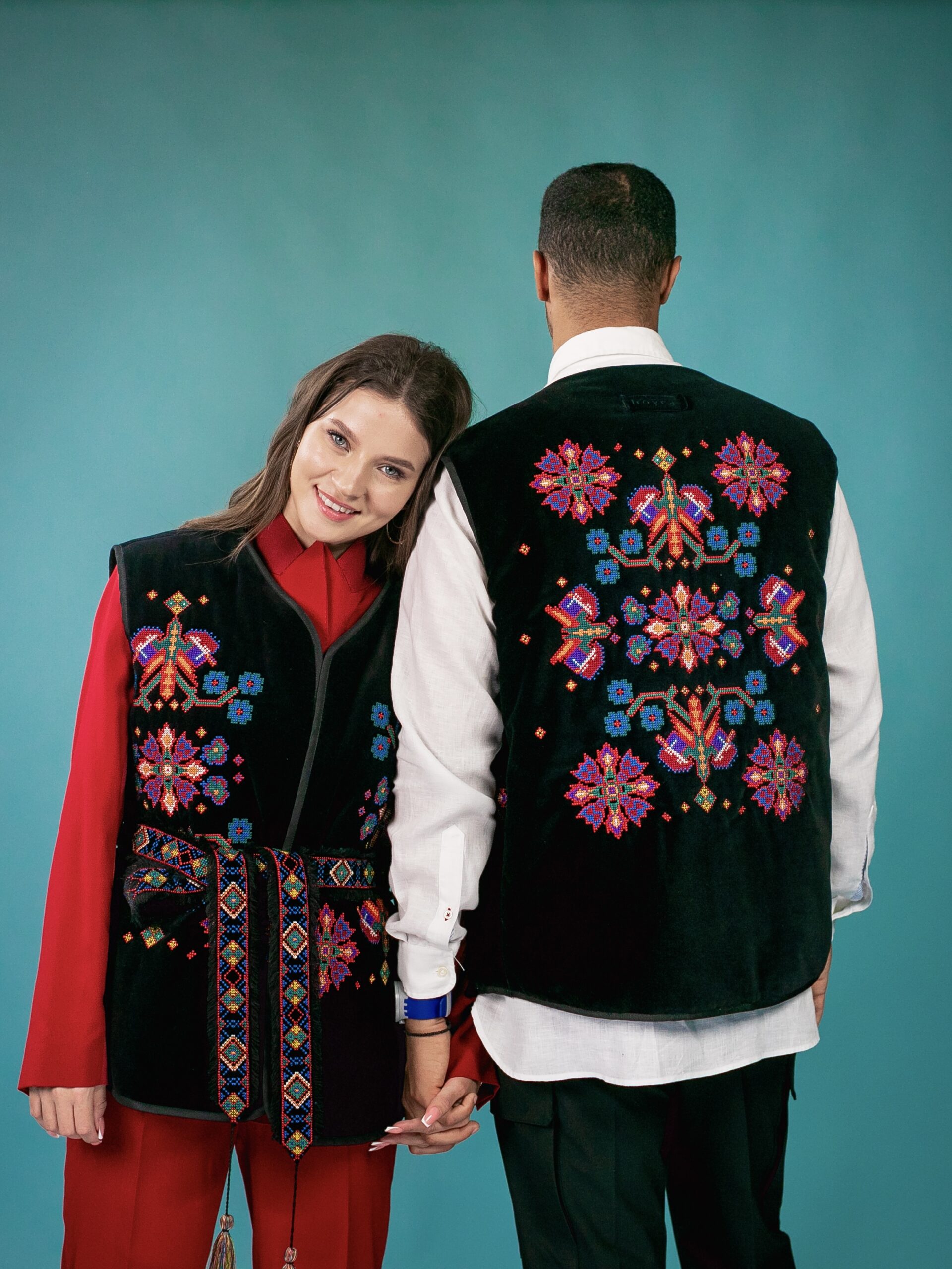 We are introducing a Reversible Vest – comfortable and functional wear rooted in Ukrainian culture. Both sides of the vest have unique embroidery patterns: one is brighter, and the other is more formal black-on-black.