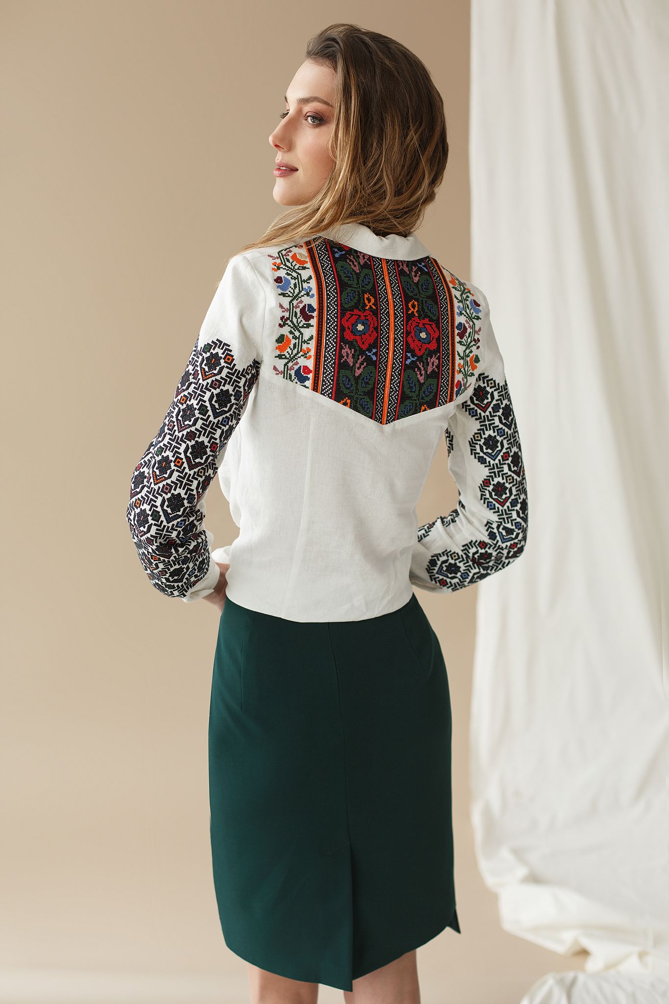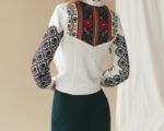 Modern embroidered shirt will be the decoration of any woman. Colorful embroidery with geometric patterns on the sleeves, without a doubt, is the main decoration of the dress.