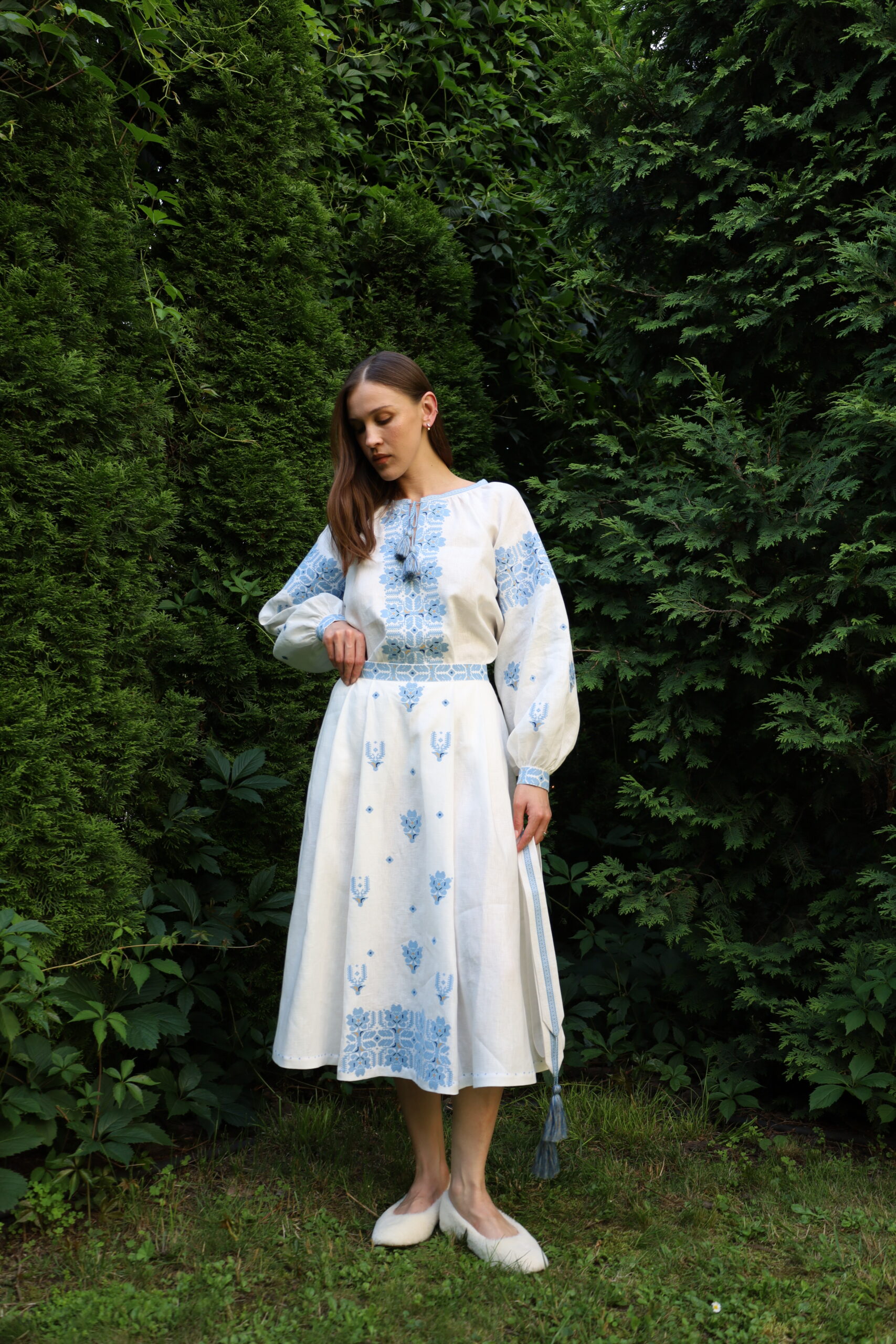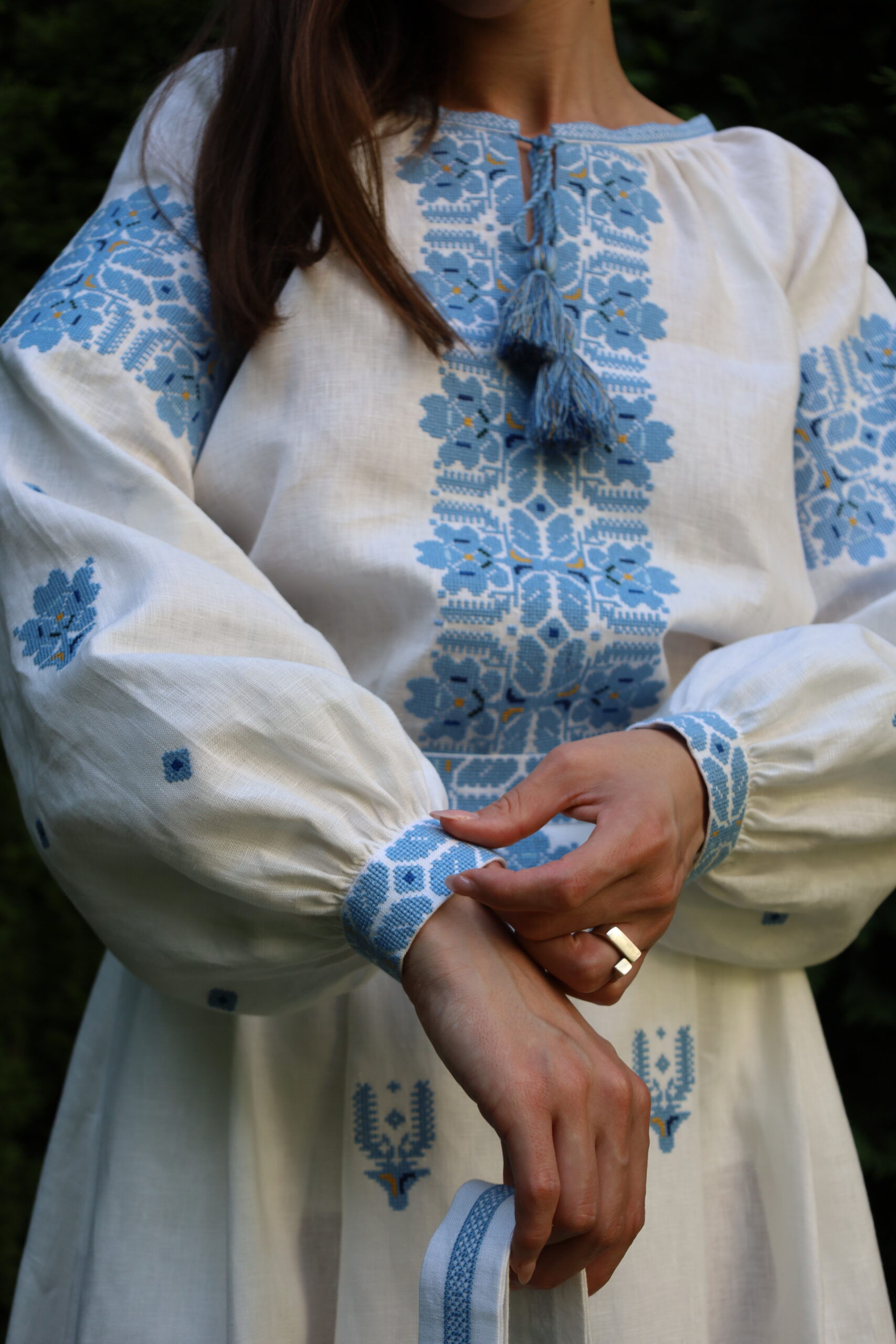 Сучасна вишиванка стане окрасою будь-якої жінки. Ніжна блакитна вишивка хрестиком.