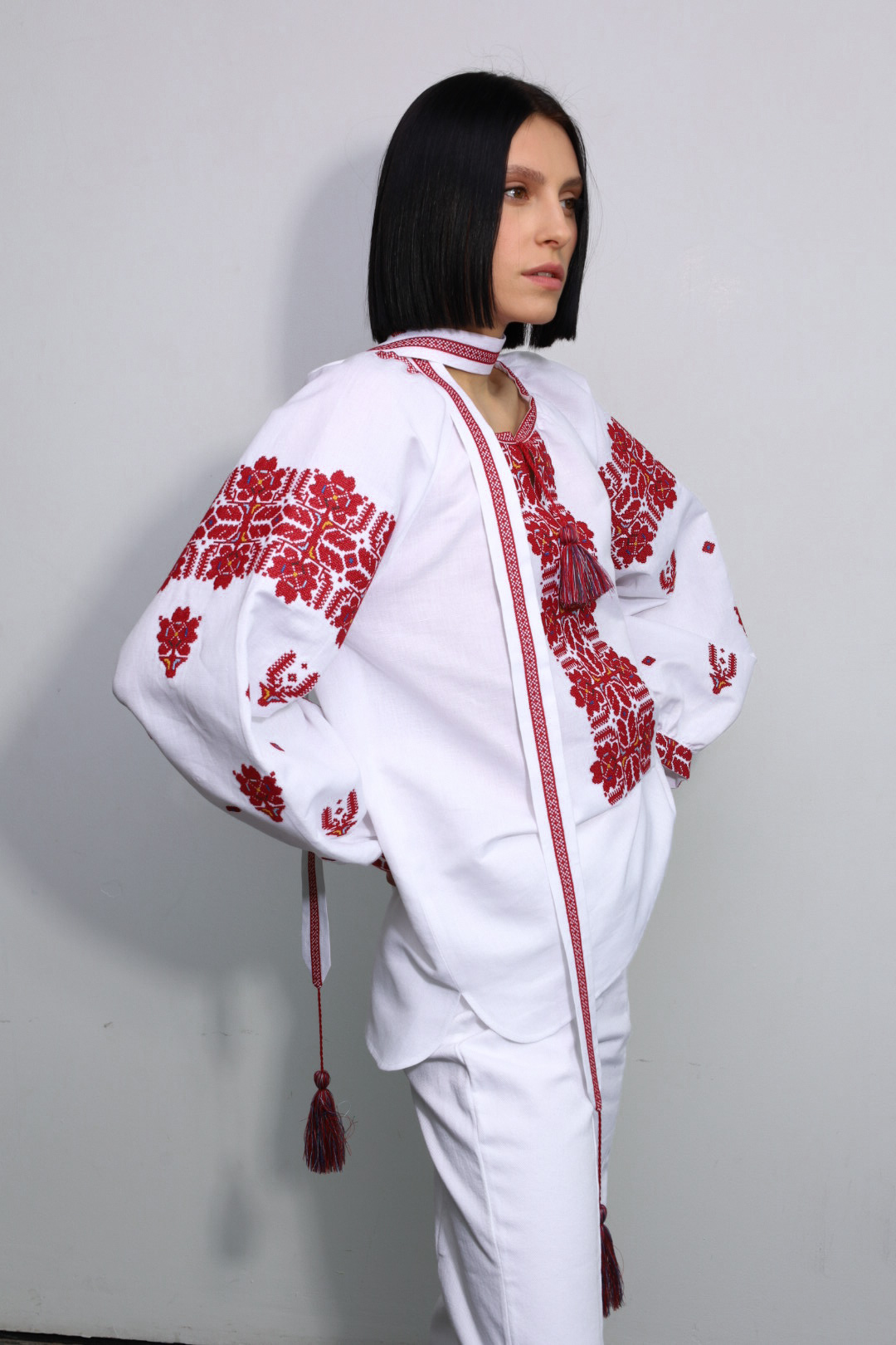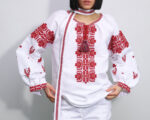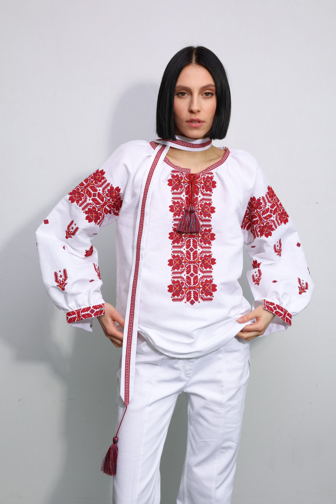 Сучасна вишиванка стане окрасою будь-якої жінки. Ніжна червона вишивка хрестиком.