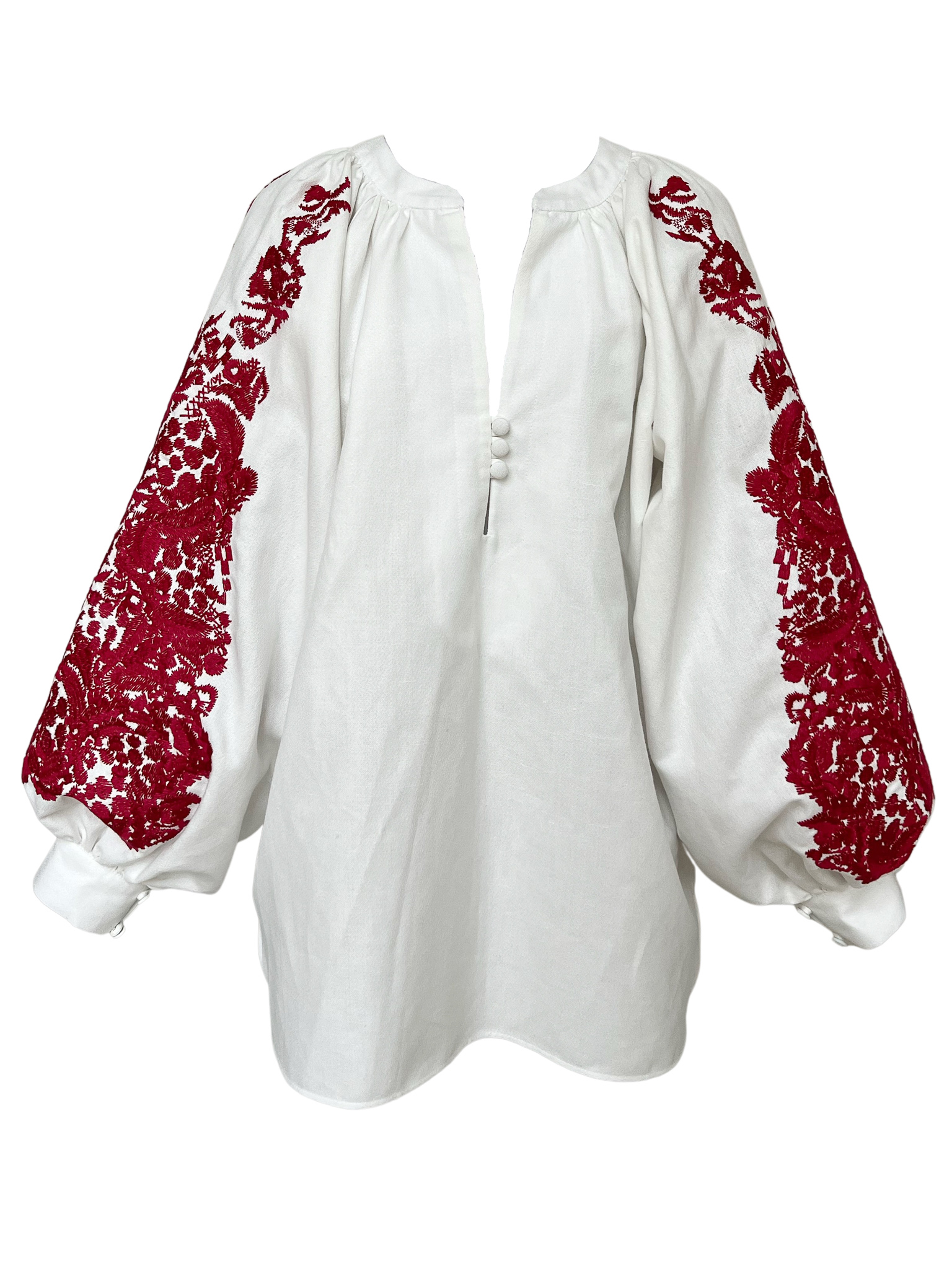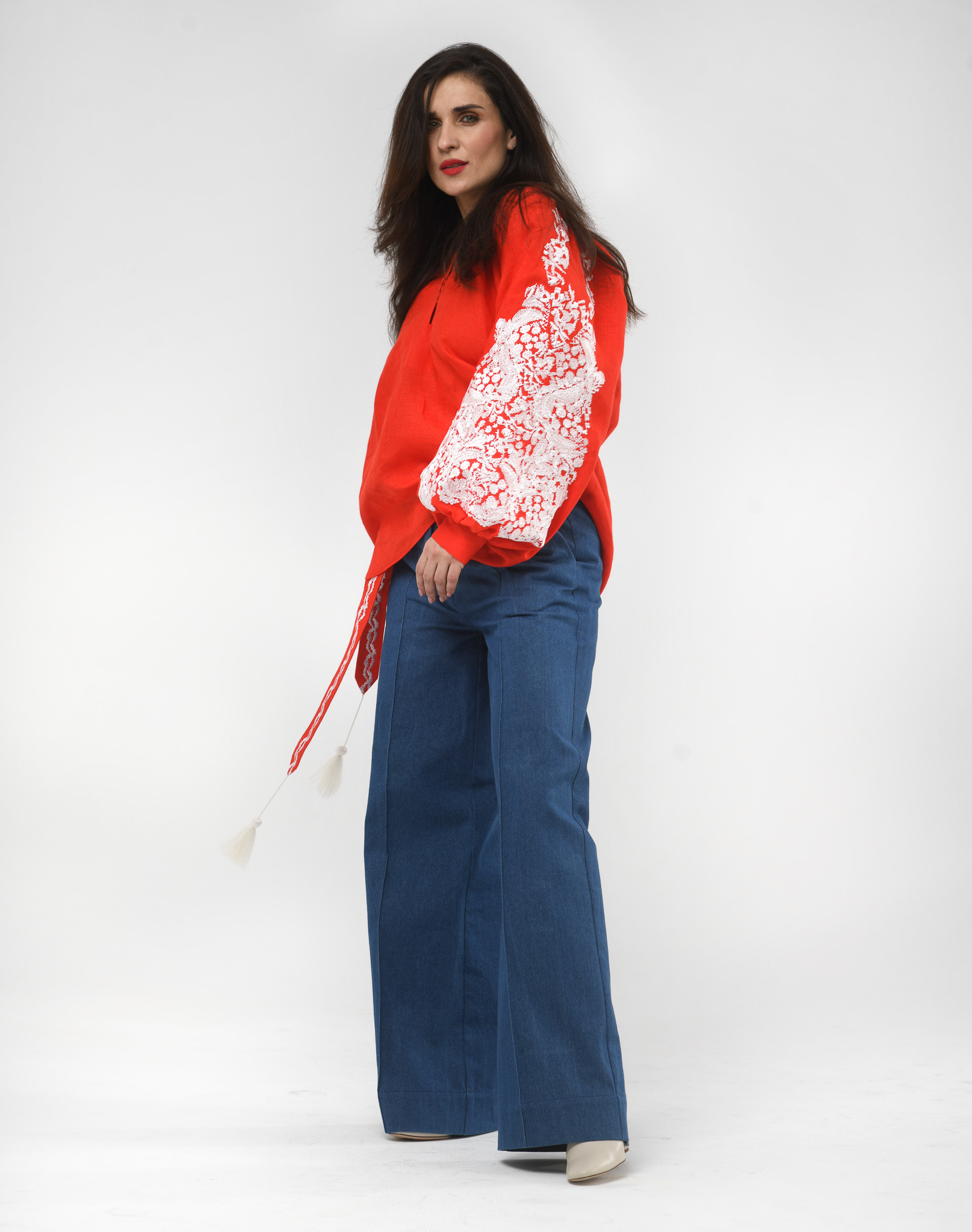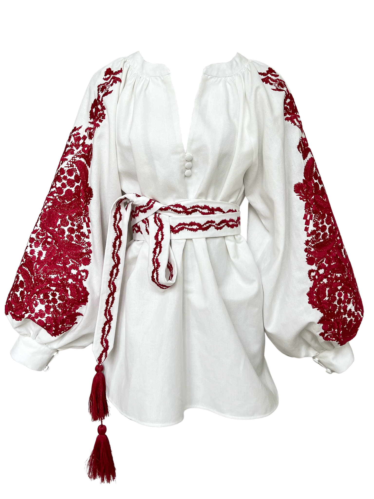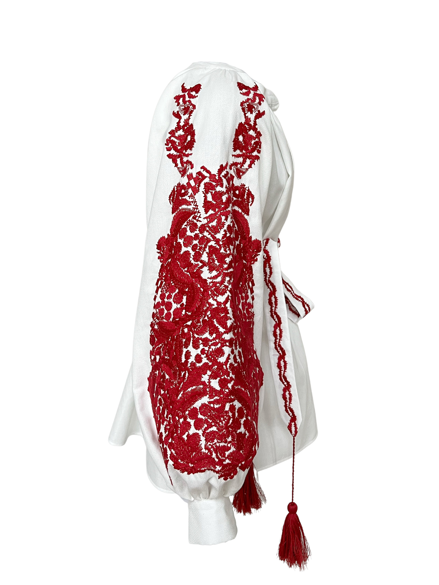 Блуза з вишивкою в техніці гладь. Вільний силует. Китиці ручної роботи.