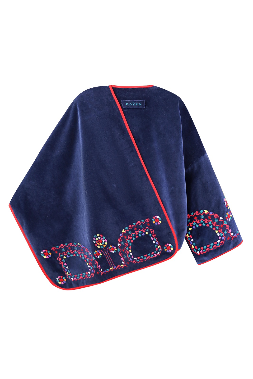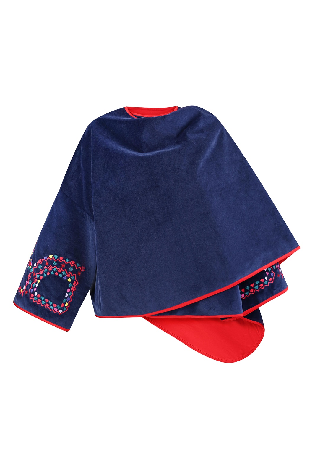 Кейп Покуття з вишивкою в техніці гладь (машинна вишивка). Тканина оксамит світло синій. На підкладці