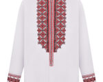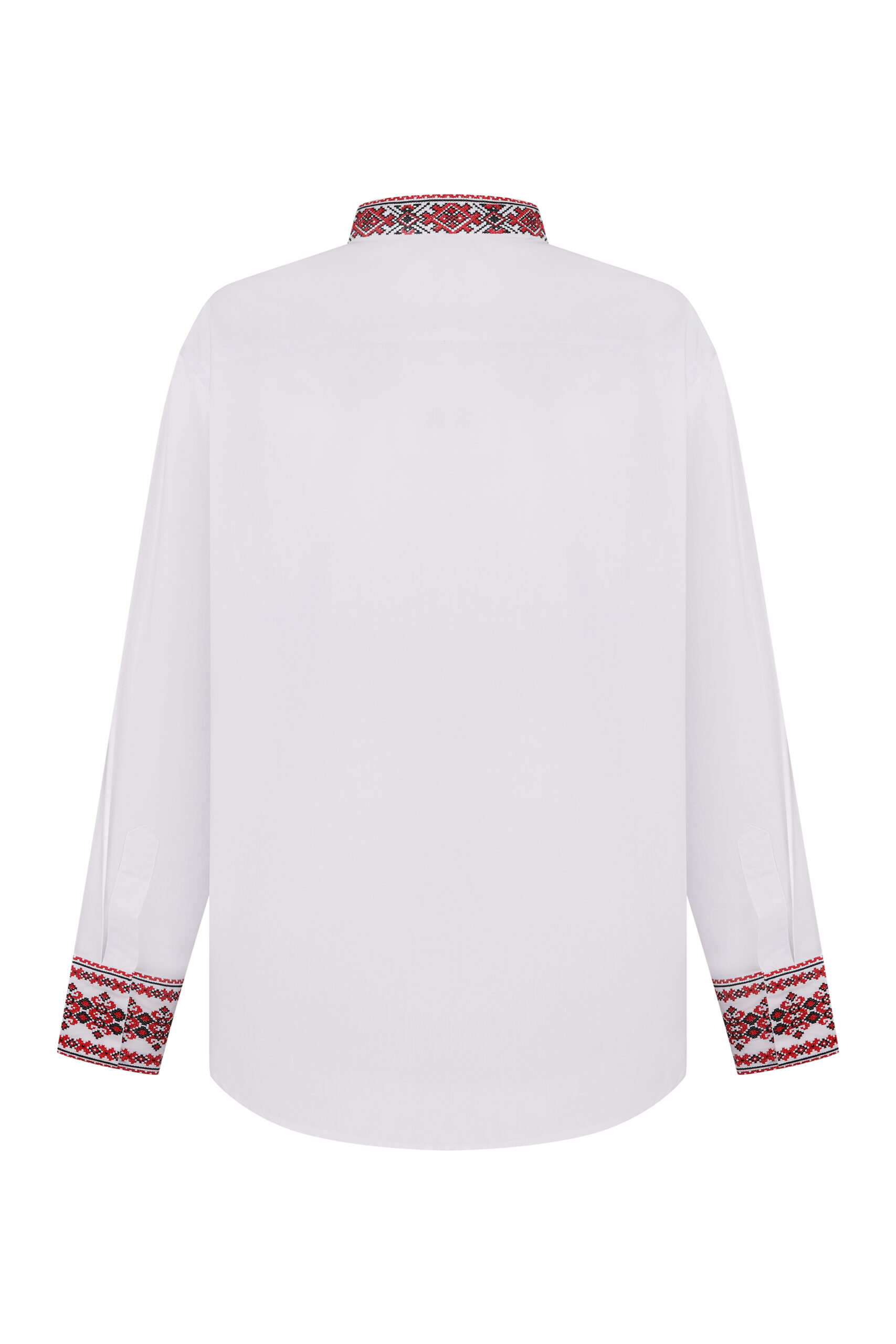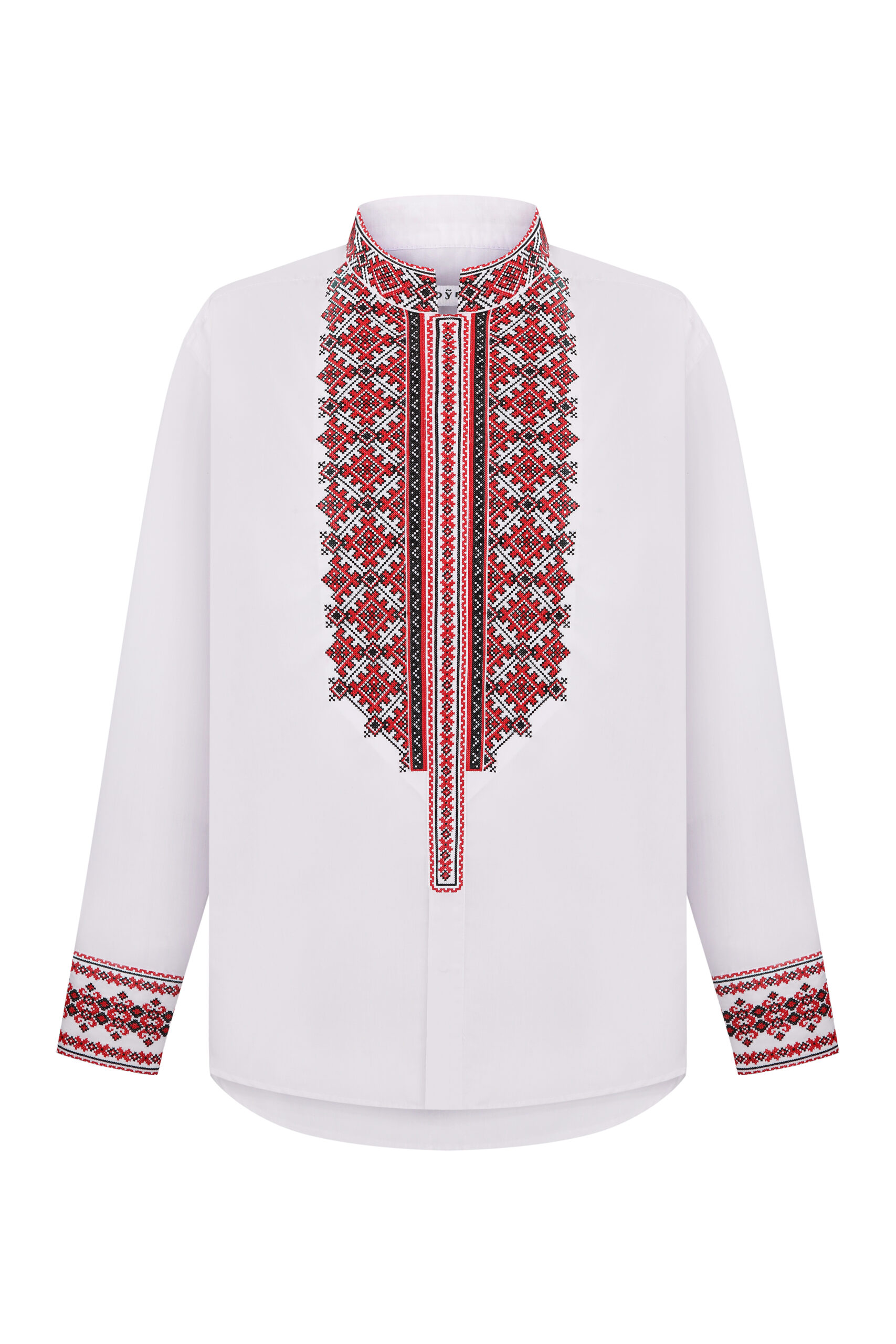 Чоловіча сорочка з вишитою планкою, стійкою та манжетами на кнопки.