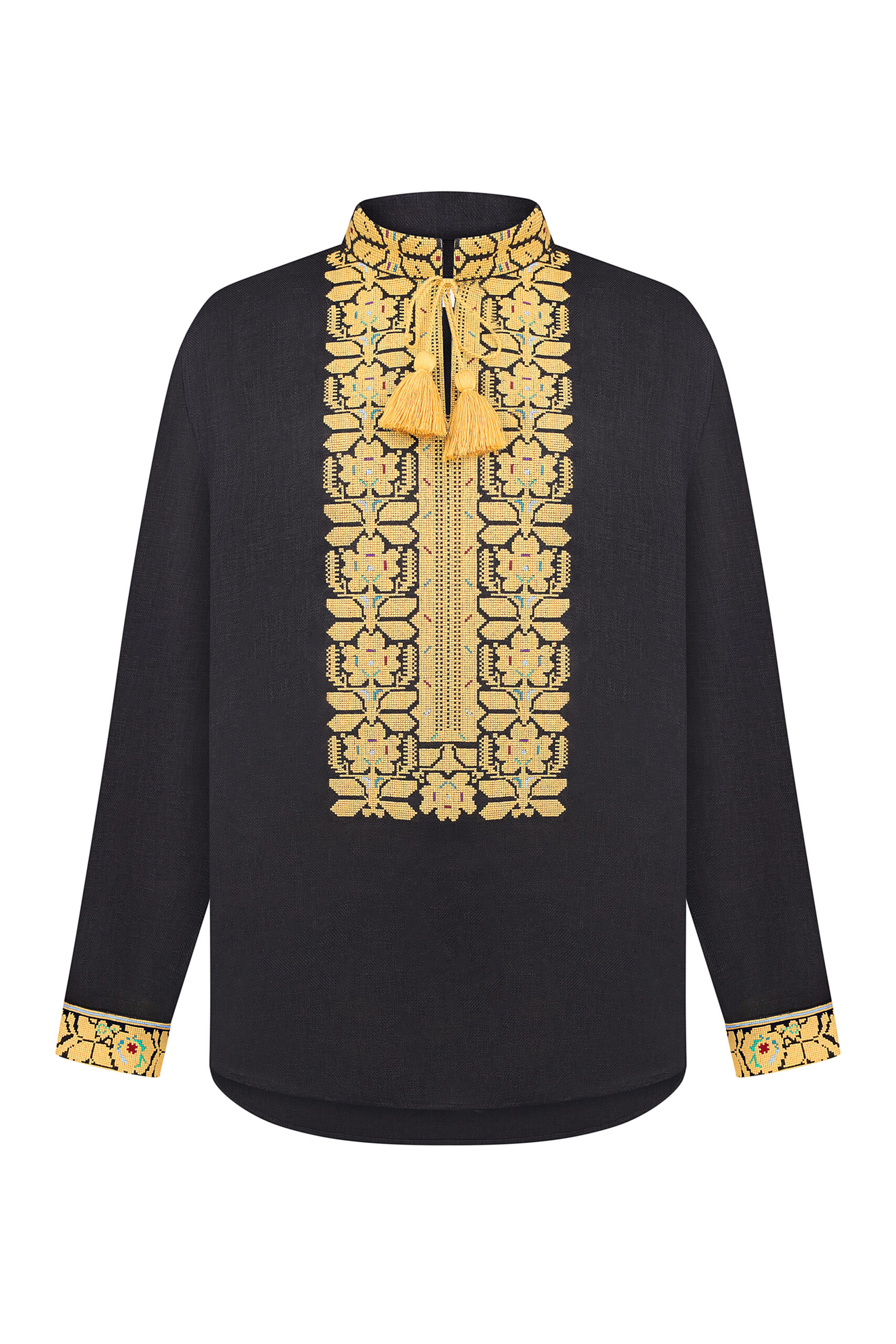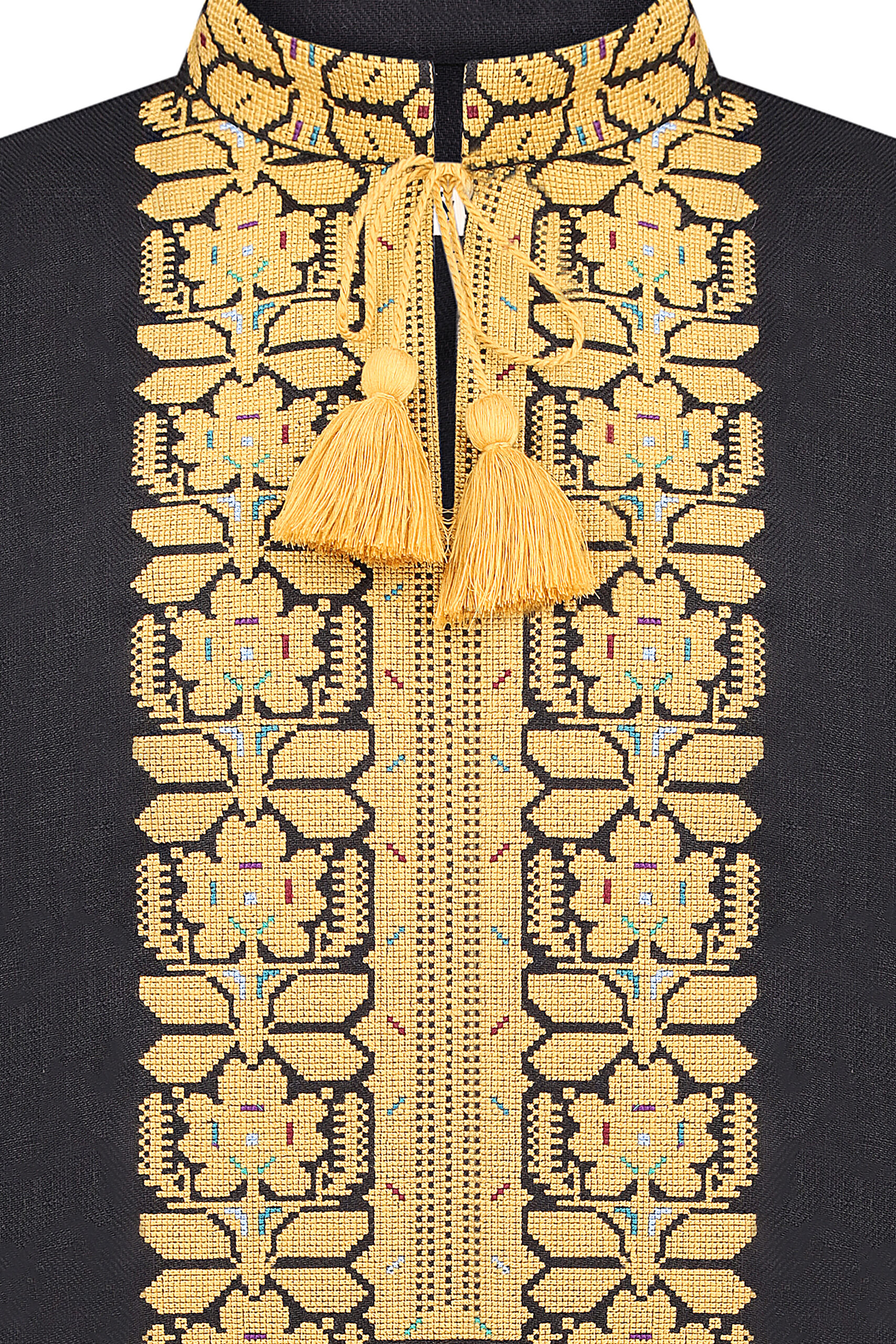 Сорочка з вишивкою в техніці хрестик. Тканина льон. Сорочка на проріз з комірцем вишитою стійкою. Вільний силует, прямий крій. Китиці ручної роботи.