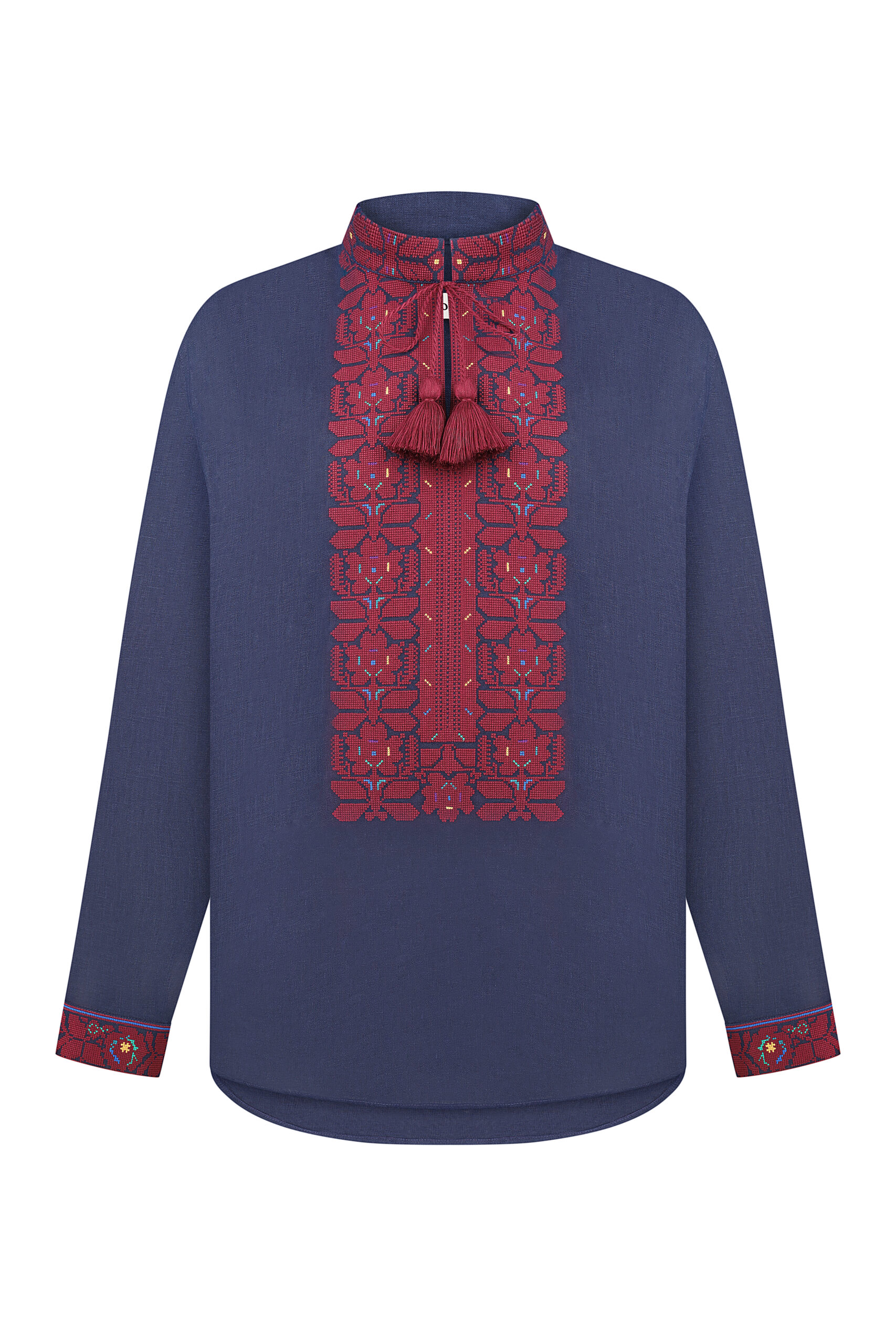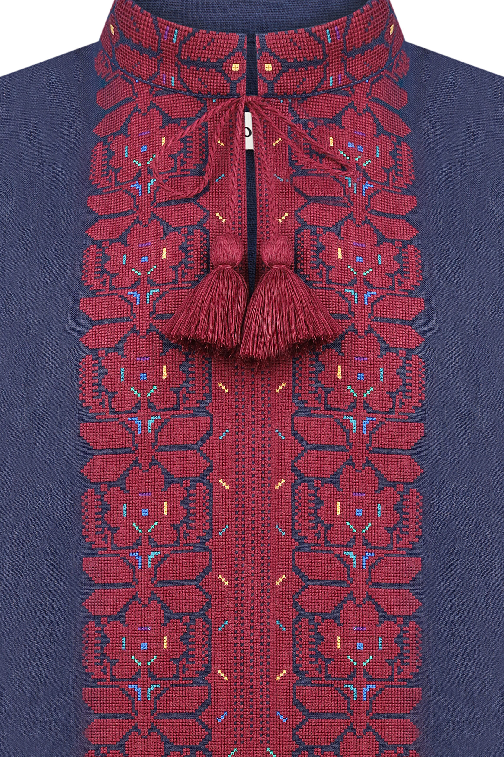 Сорочка з вишивкою в техніці хрестик. Тканина льон. Сорочка на проріз з комірцем вишитою стійкою. Вільний силует, прямий крій. Китиці ручної роботи.