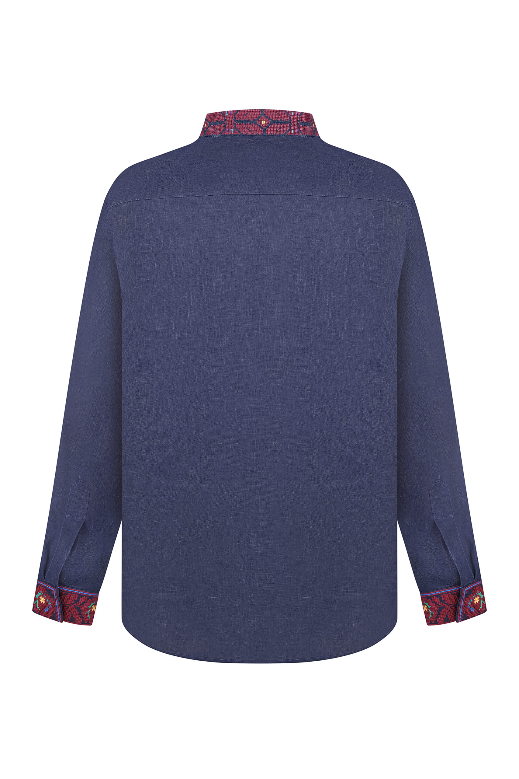 Сорочка Оксамитова ружа на темно синьому льоні з бордовою вишивкою