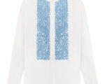 Сорочка Перо на білому льоні з блакитною вишивкою