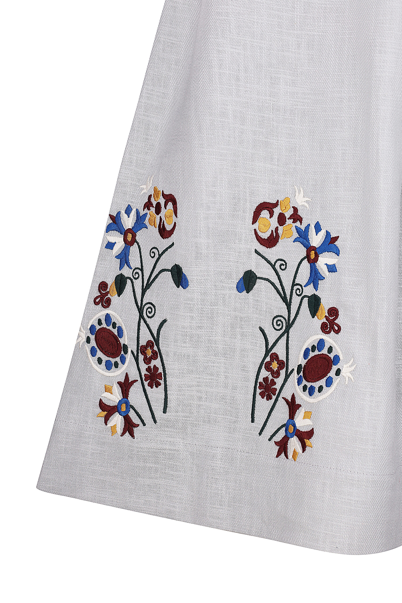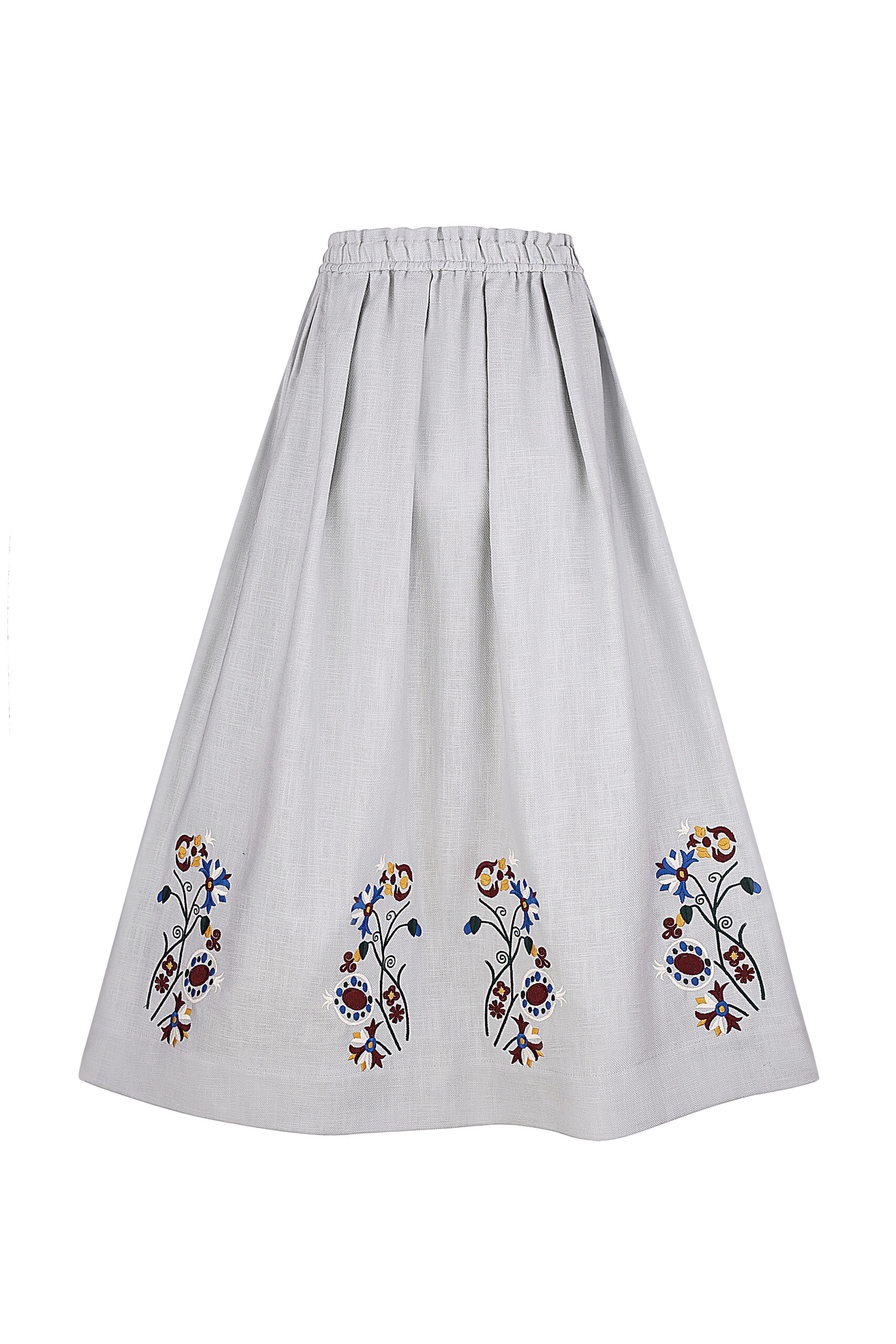 Спідниця з вишивкою в техніці гладь. Тканина льон. З еластичною резинкою на поясі. Дві бокові кишені. Вільний силует. До спідниці є комплект блуза. Довжина виробу по спинці ~ 96 см.