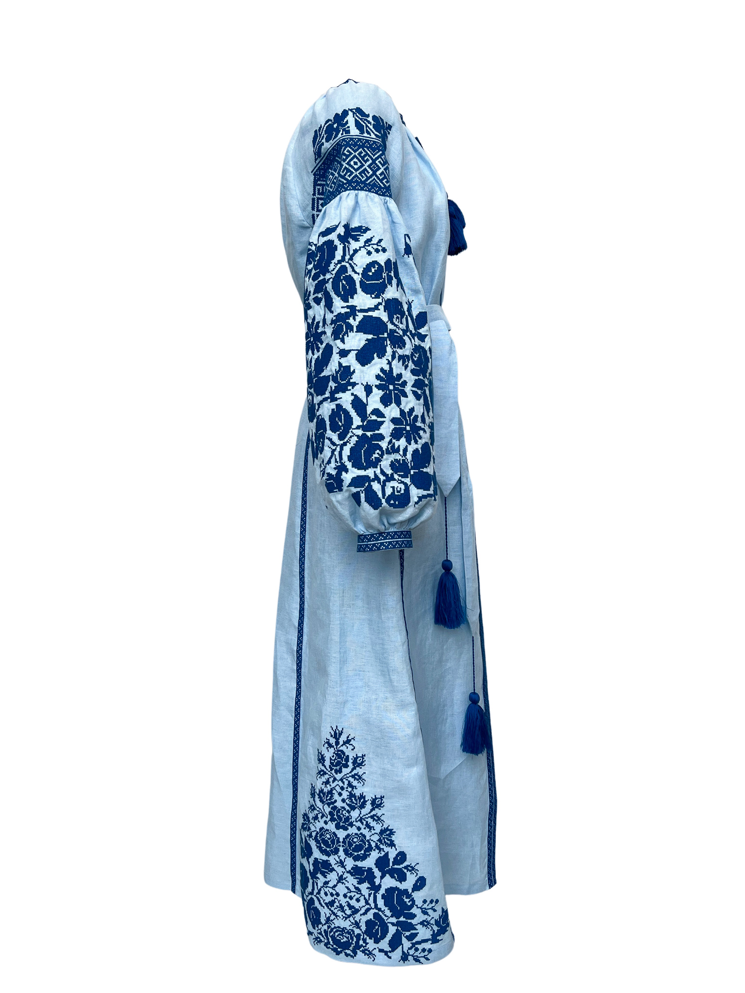 Вишита сукня з квітами виконана на льоні – легка та комфортна.