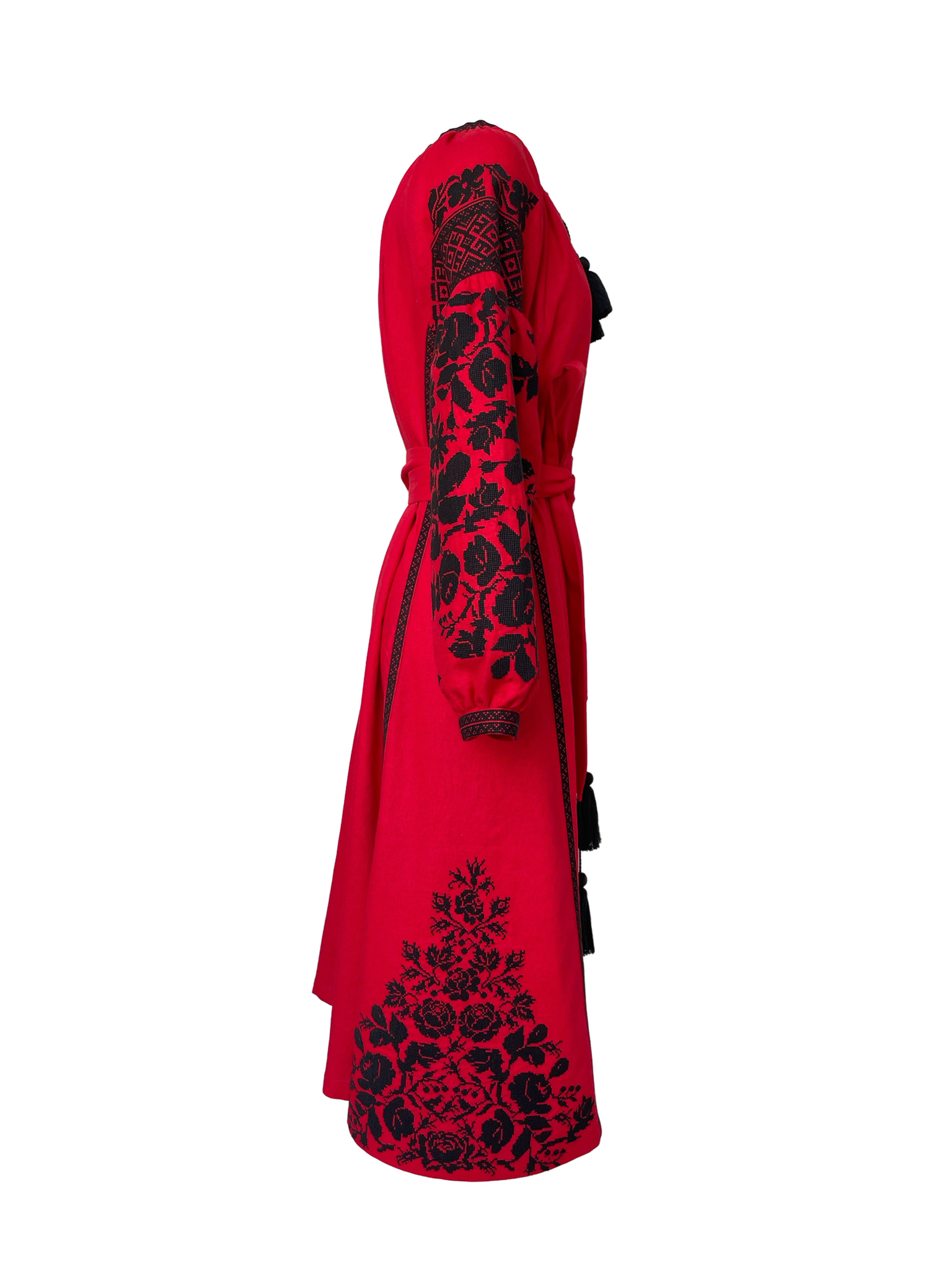 Вишита сукня з яскравими квітами виконана на льоні з бавовною – легка та комфортна.