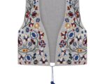 Жилет Чортополох на сірому льоні з кольоровою вишивкою