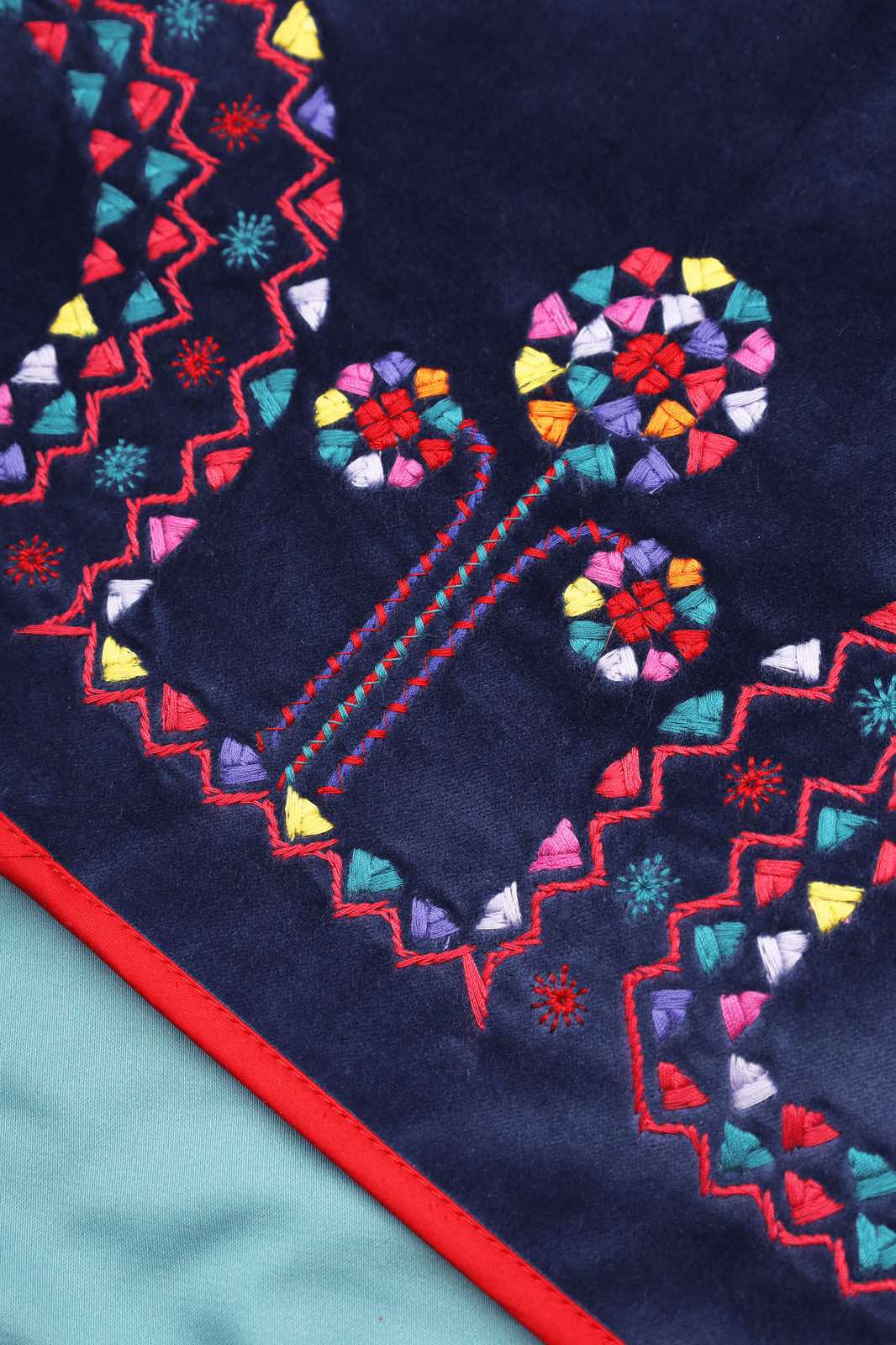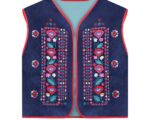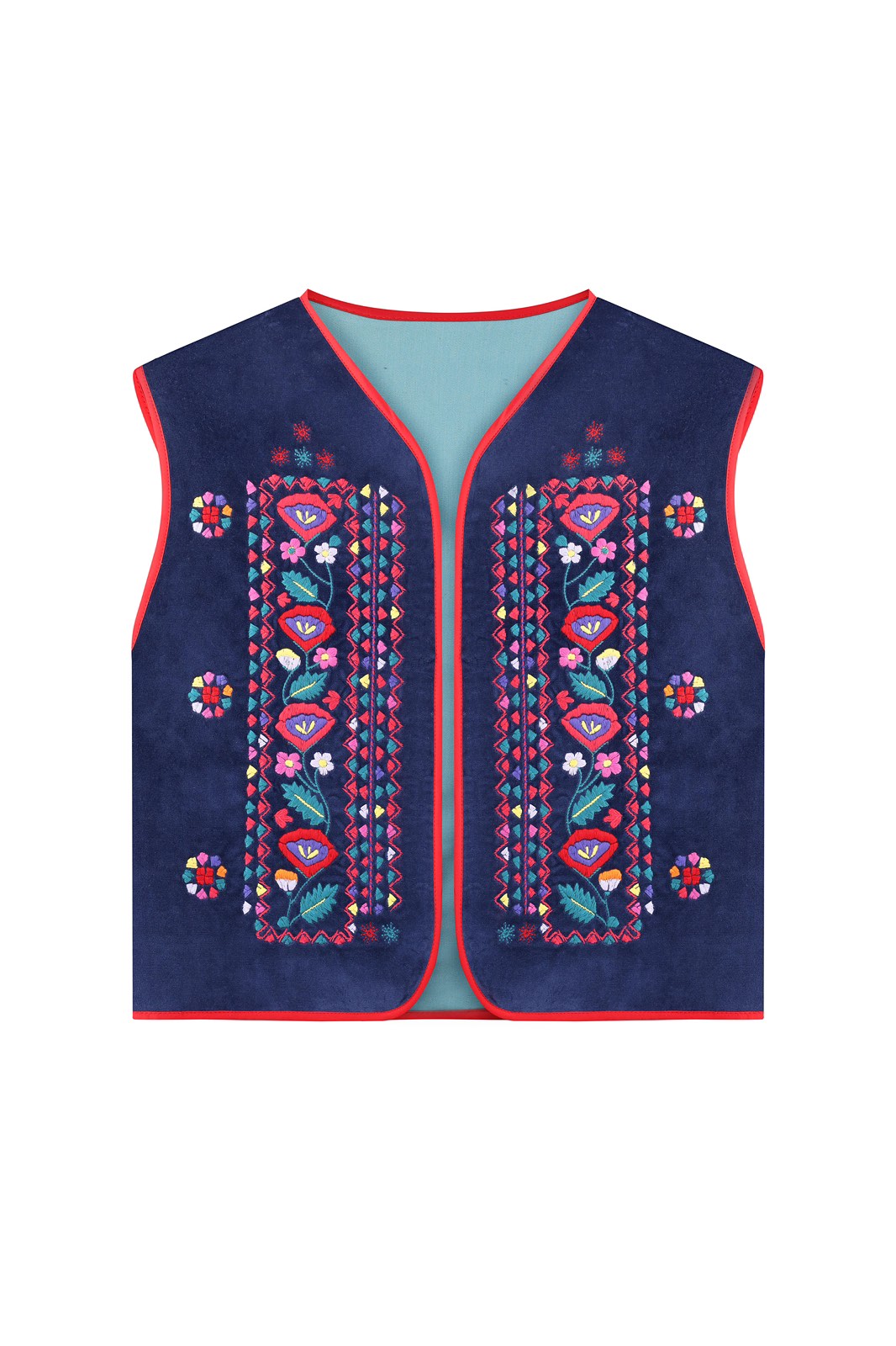 Жилет з вишивкою в техніці гладь (машинна вишивка). Тканина оксамит світло синій. Прямий крій, вільний силует, виступаюче плече,вкорочений. На підкладці